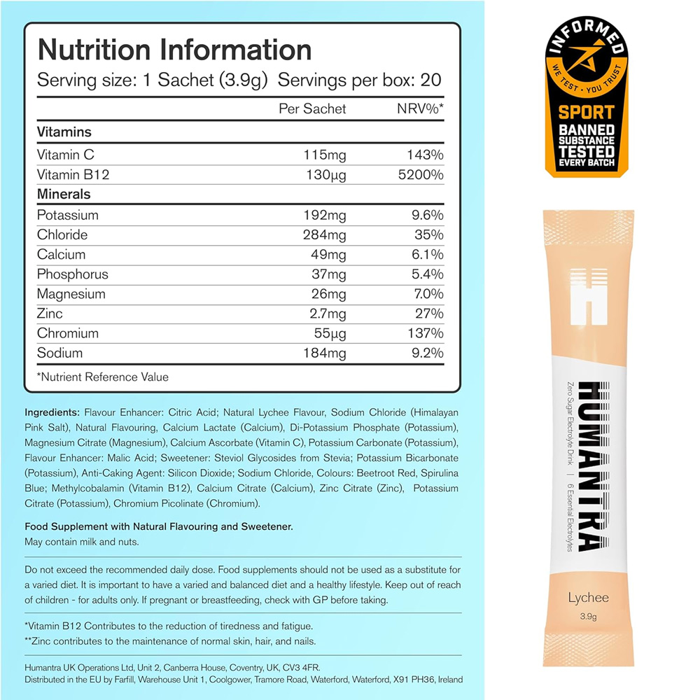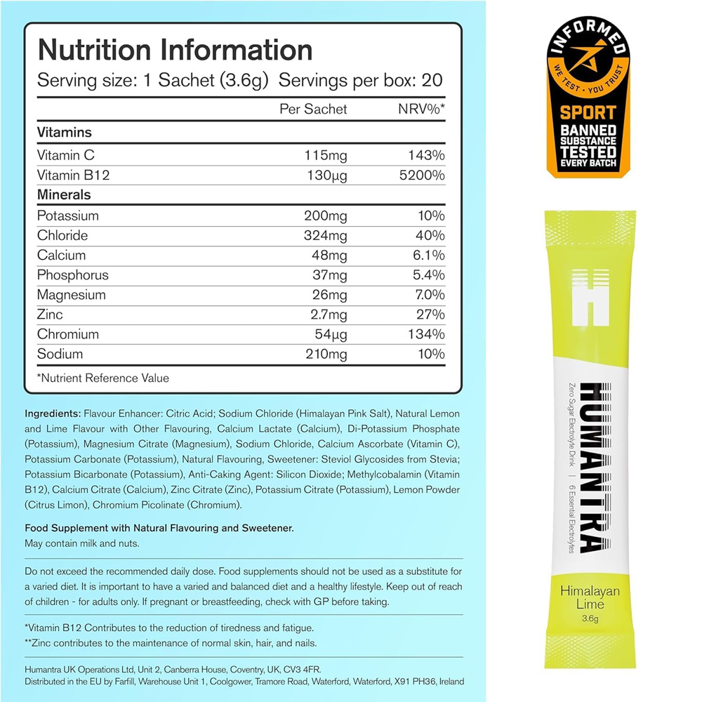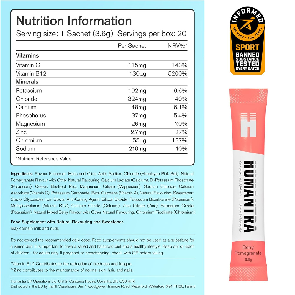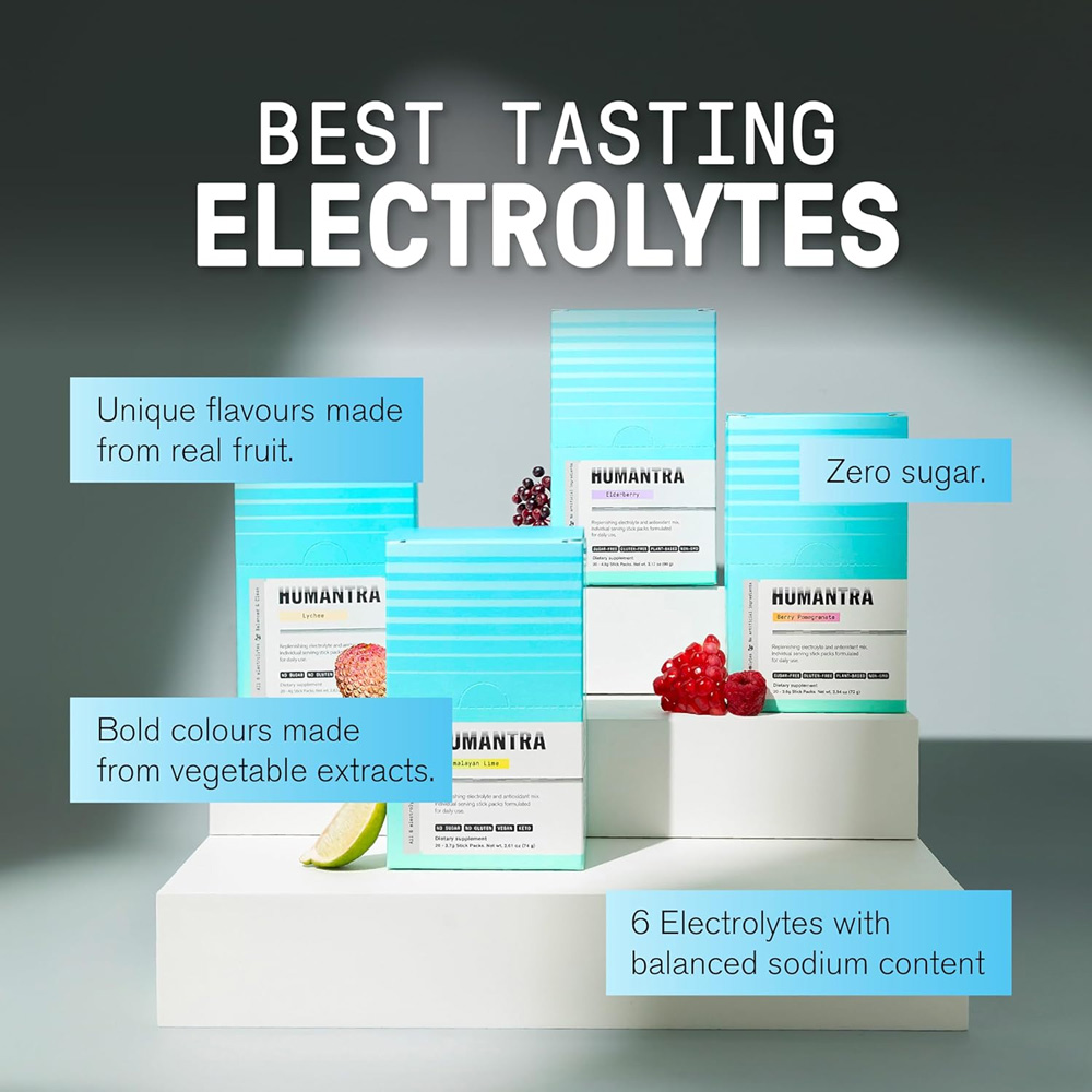 الکترولایت ساشه هیومنترا یک پودر هیدراتاسیون کامل و بدون شکر با شش الکترولیت ضروری است که هیدراتاسیون بدن را تا ۴ برابر افزایش میدهد. مناسب ورزشکارها، سبکزندگی سالم و افرادی که دنبال انرژی، ریکاوری سریع و سلامت گوارش هستند.(تولید امریکا)