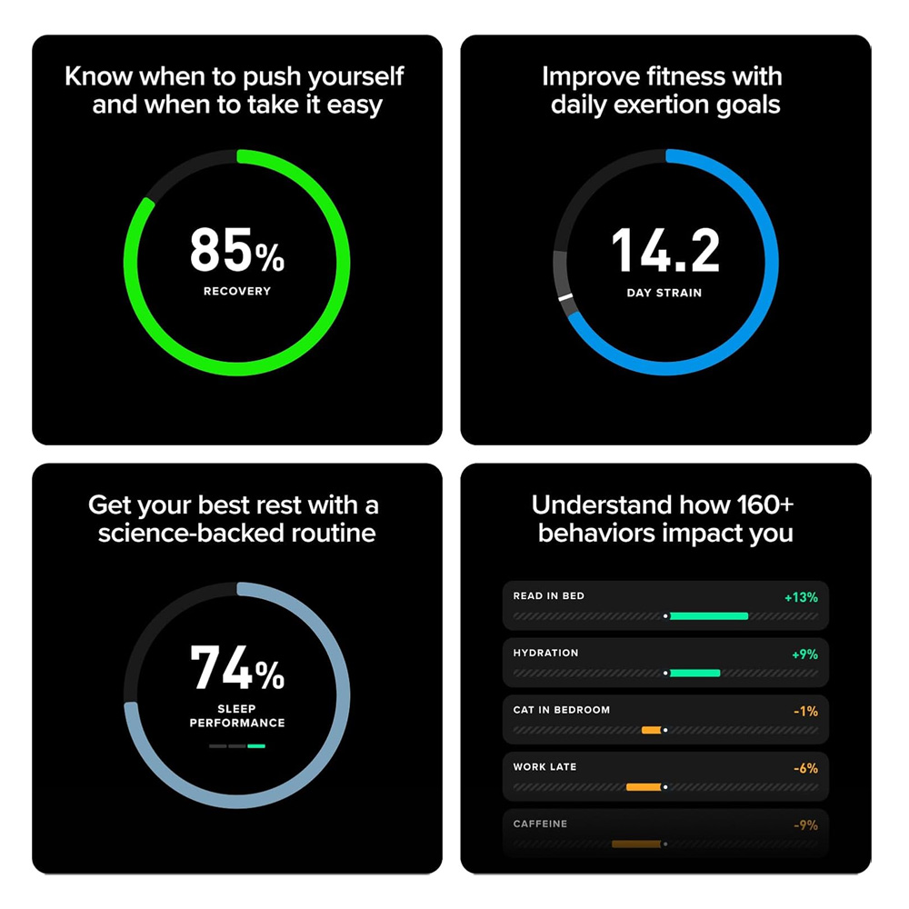• دفترچه روزانه WHOOP Journal برای ثبت بیش از ۱۶۰ رفتار روزانه و دیدن اثر عادات بر ریکاوری