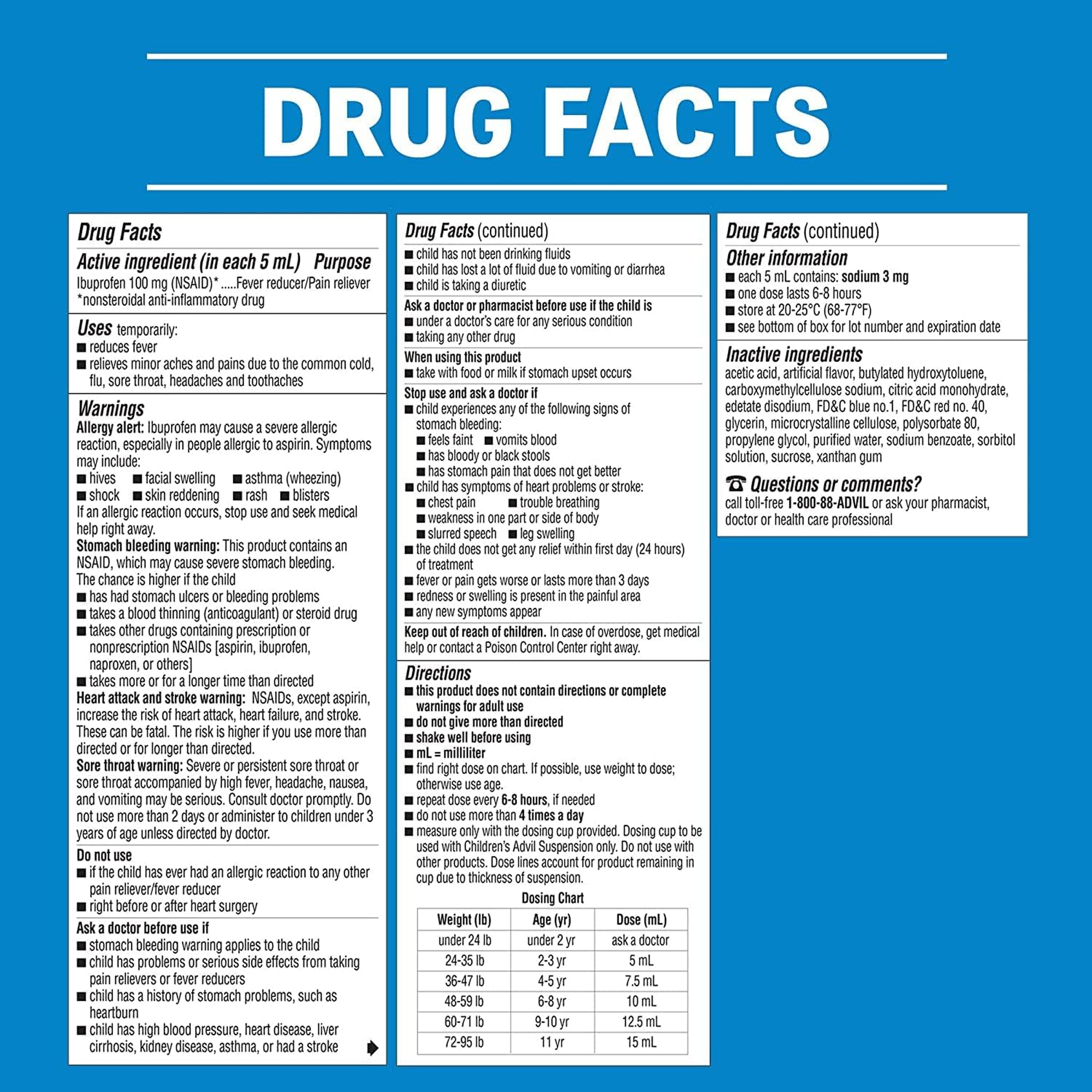 اطلاعات علمی و جزئیات بیشتر درباره Children's Advil Suspension را میتوانید در وبسایت رسمی Advil مطالعه کنید.