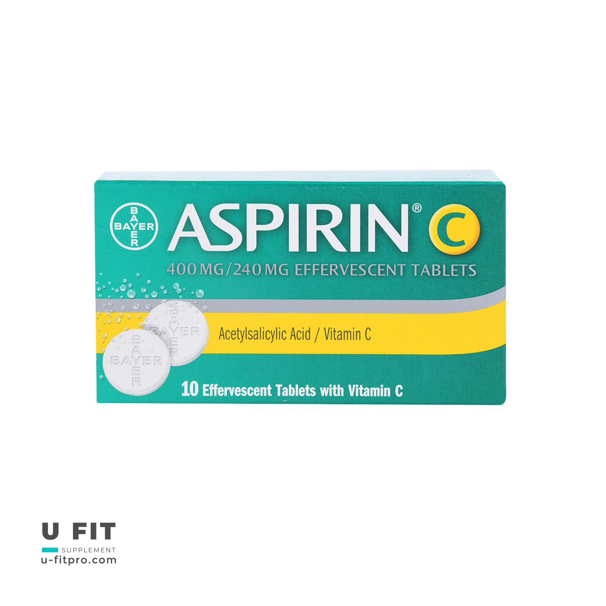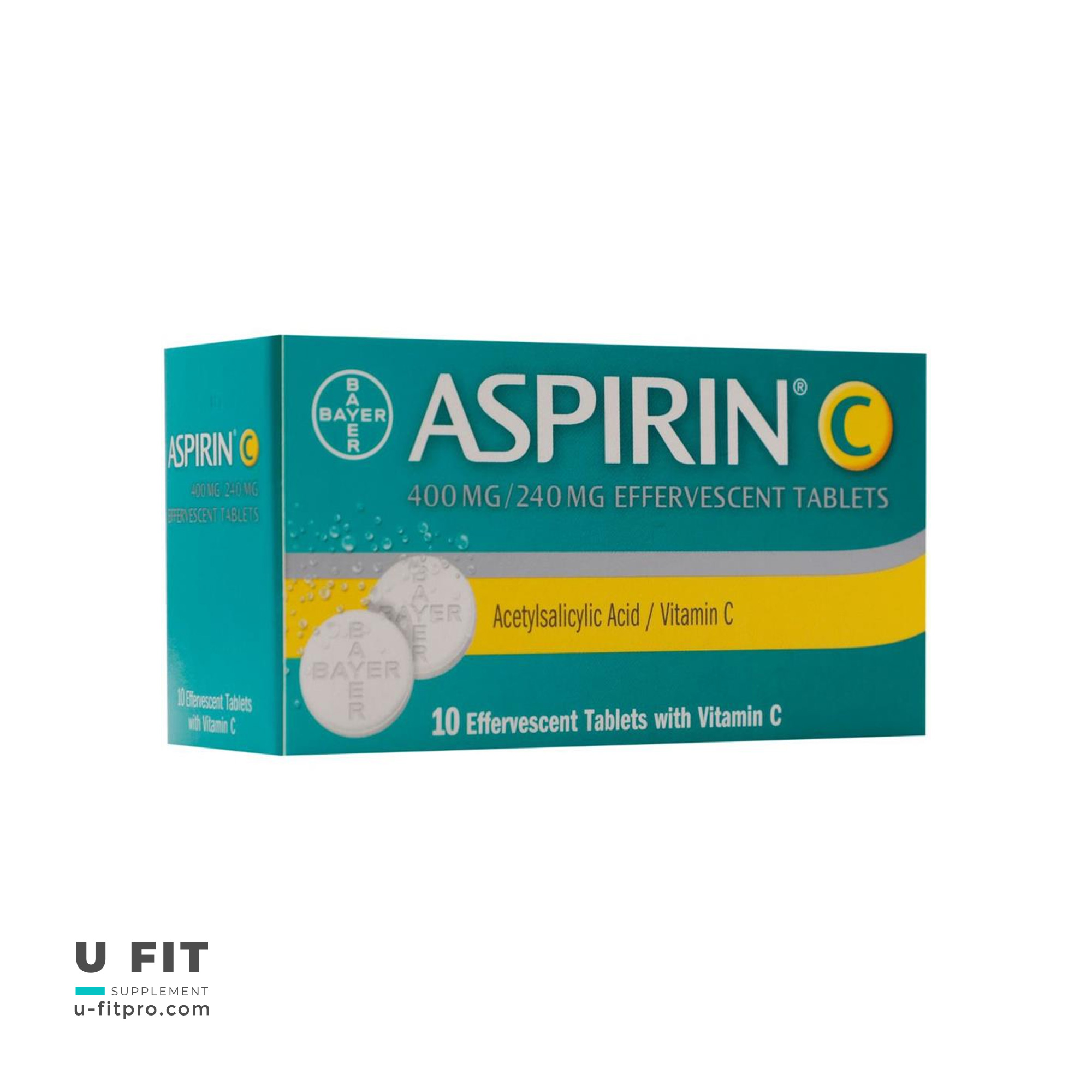 قرص جوشان آسپرین ویتامین سی بایر حاوی 400 میلی گرم استیل سالیسیلیک اسید و 240 میلی گرم ویتامین C است که برای کاهش تب، تسکین دردهای خفیف تا متوسط مانند سردرد، دندان درد و درد عضلانی و کمک به بهبود علائم سرماخوردگی و آنفلوآنزا استفاده می شود.