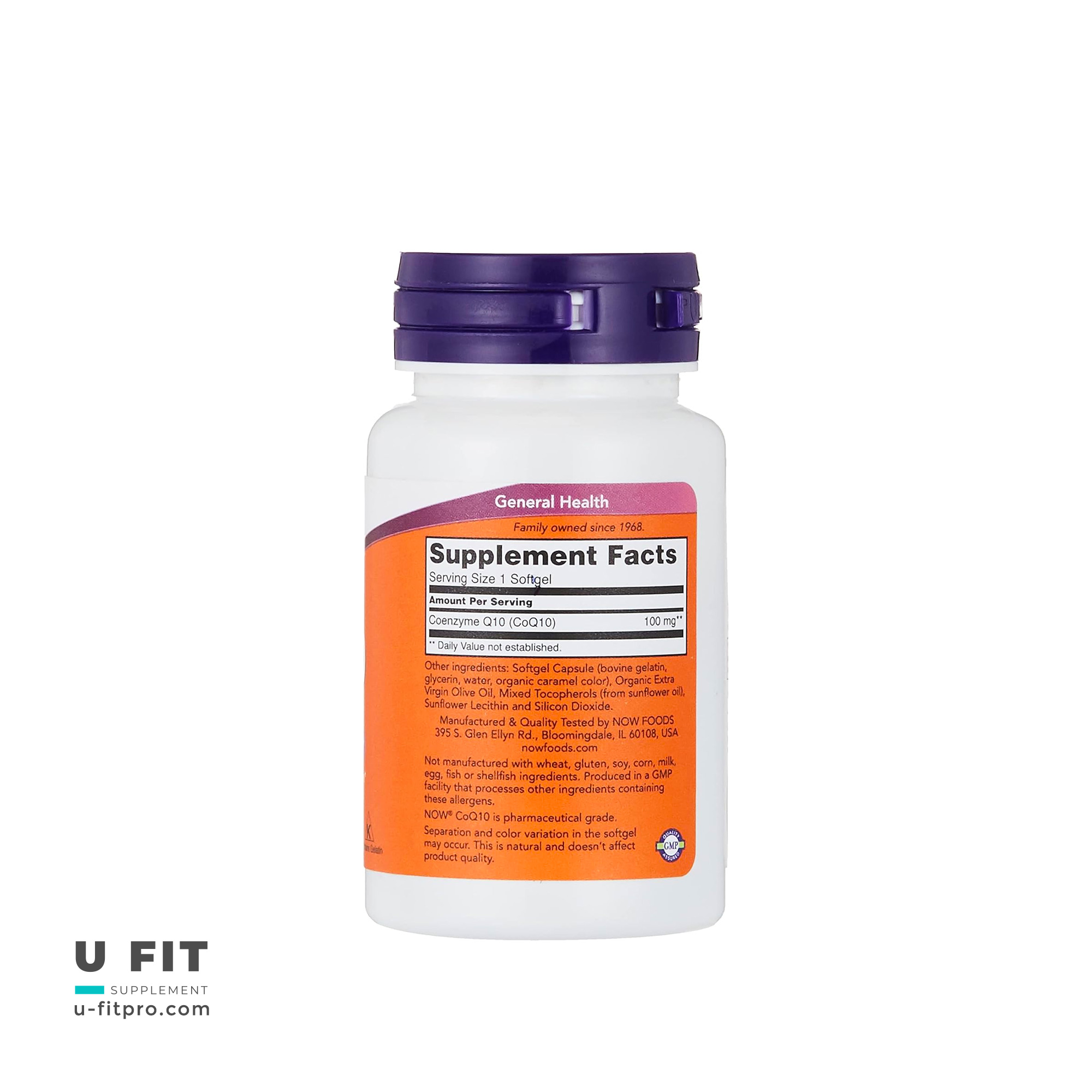 این محصول حاوی Coenzyme Q10 (CoQ10) 100 mg و ویتامین E (d-alpha Tocopherol) 30 IU است و مناسب بزرگسالان میباشد.