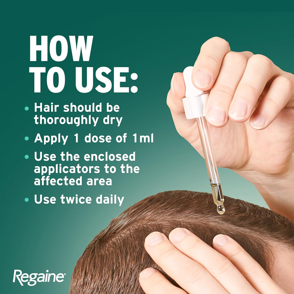 موها و پوست سر باید کاملاً خشک باشند. ۱ میلیلیتر محلول ماینوکسیدیل ۲٪ ریگین را دو بار در روز، صبح و شب، روی نواحی مورد نظر پوست سر اعمال کنید. محصول دارای دو نوع اپلیکاتور است: اسپری پمپ برای نواحی وسیع و اسپری نوکبلند برای نواحی کوچک. پس از مصرف، محلول را به آرامی ماساژ دهید و دستان خود را بشویید. برای دستیابی به نتایج قابل مشاهده، مصرف منظم و مداوم ضروری است و اثرگذاری محصول معمولاً پس از ۸ تا ۱۲ هفته قابل مشاهده خواهد بود. از مصرف بیش از دوز توصیه شده خودداری کنید و ادامه مصرف برای حفظ نتایج ضروری است.