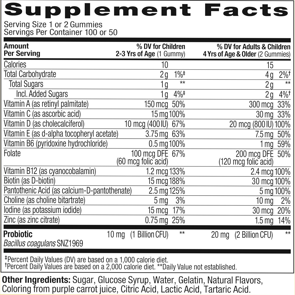 پاستیل اُلی مولتی‌ویتامین و پروبیوتیک کودک یک مکمل خوشمزه و علمی برای کودکان است که با ترکیبی از ویتامین‌های A, C, D, E، گروه B و روی و پروبیوتیک‌های زنده، به حفظ سلامت سیستم ایمنی، رشد جسمی و ذهنی و سلامت گوارش کودکان کمک می‌کند. این محصول بدون گلوتن، وگان و مناسب مصرف روزانه کودکان طراحی شده است.