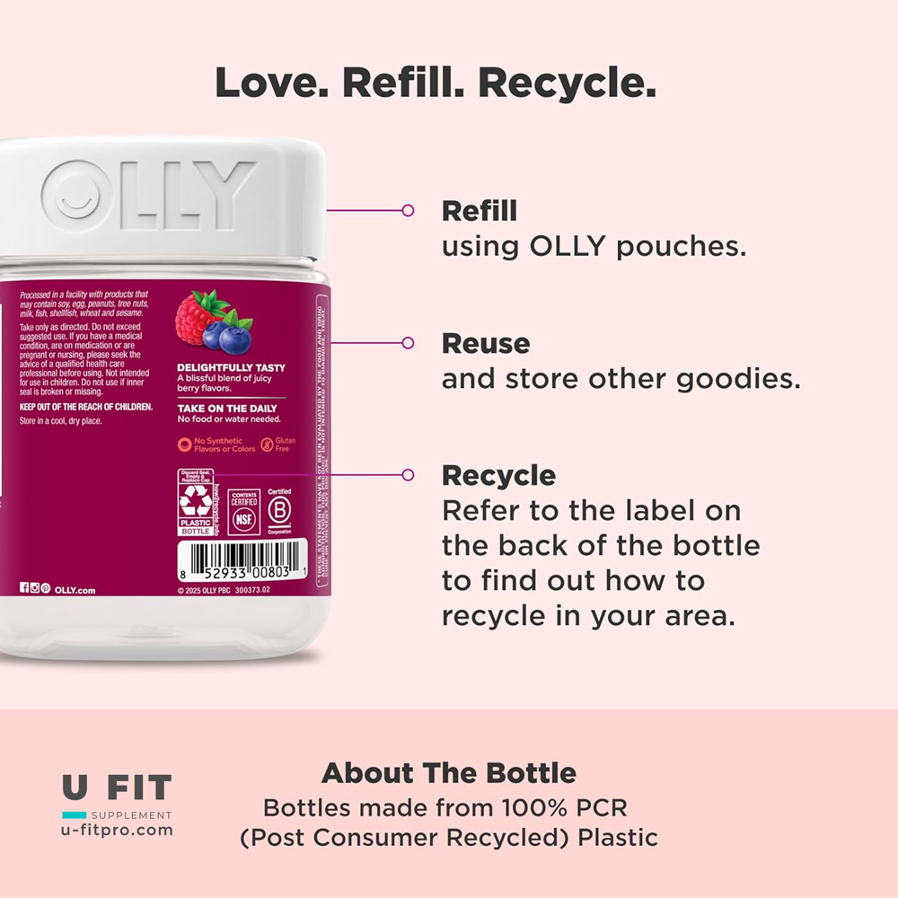 محصولات OLLY شامل گامیها، کپسولها و نوشیدنیهای تقویتی است که برای بهبود خواب، کاهش استرس، افزایش انرژی، سلامت پوست و مو، تقویت سیستم ایمنی و نیازهای روزانه طراحی شدهاند. این برند به فرمولاسیونهای علمی و طعمهای طبیعی توجه ویژه دارد.