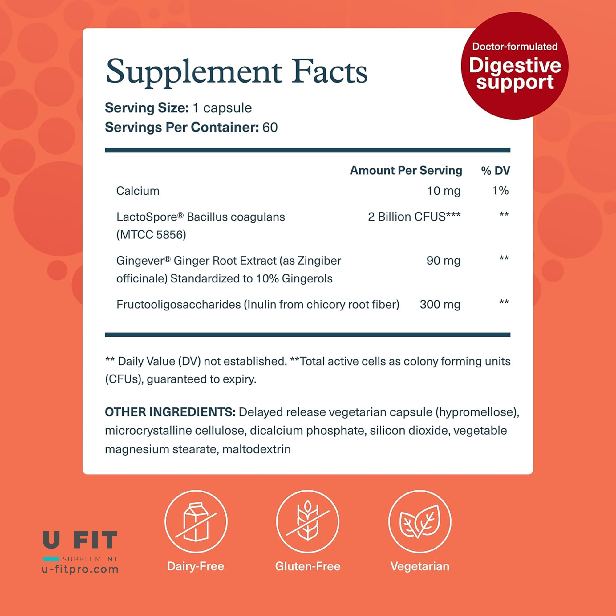 - حاوی پروبیوتیک بالینی LactoSpore® Bacillus coagulans با ۲ میلیارد CFU برای حمایت از سلامت روده و تعادل فلور گوارشی