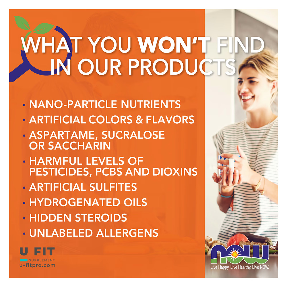 - تولیدشده تحت استانداردهای GMP و کنترل کیفی دقیق توسط برند معتبر NOW Foods