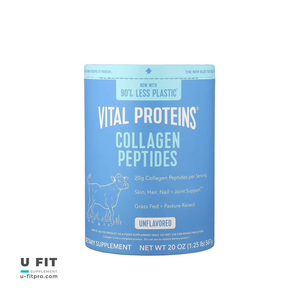 محصول كلاژن پپتايد ويتال پروتئینز یکی از پرفروشترین و معتبرترین مکملهای کلاژن در جهان است که با دارا بودن ۲۰ گرم کلاژن پپتاید خالص در هر سروینگ، به جوانسازی پوست، تقویت مفاصل، سلامت مو و ناخن کمک مؤثری میکند. این محصول از دامهای Grass Fed & Pasture Raised تهیه شده و دارای استانداردهای NSF Certified Sport و تست کیفیت Non-GMO است.